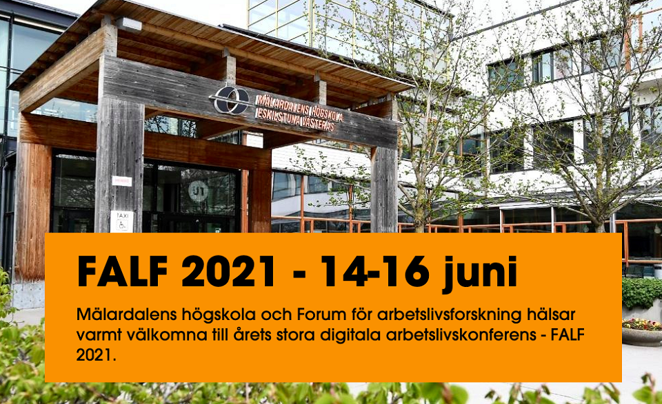 Konferensen FALF 2021 går av stapeln den 14–16 juni, och arrangeras av Mälardalens högskola. På konferensens hemsida skriver arrangörerna bl.a. ”Vi vill att FALF 2021 blir en plats för nyfikna möten kring samtidens stora utmaningar, hur de tar sig in på arbetsplatsen och antingen bidrar till, eller motverkar, ett arbetsliv som är hälsosamt både för individer och företag och organisationer. Vi vill stimulera till att låta motstridiga röster höras, och främja en dialog baserad på kunskap och erfarenheter från olika perspektiv. Vår förhoppning är att konferensen ska inspirera till nytänkande om det hållbara arbetslivet, mod att våga ifrågasätta oss själva och en strävan mot nya sätt att utveckla både forskning och praktik.”